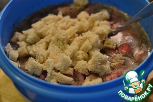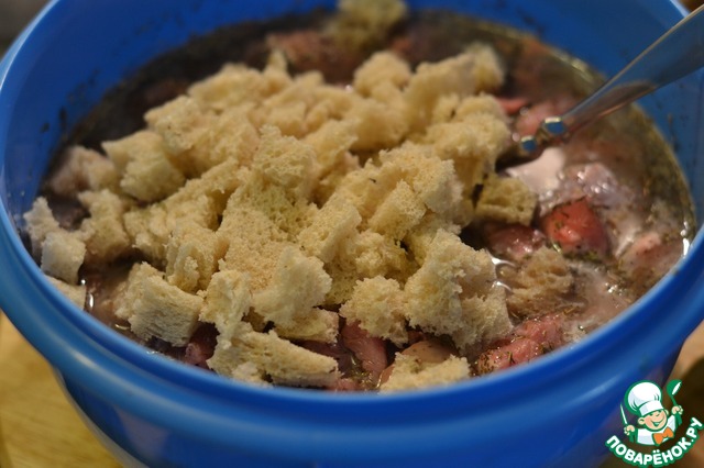 С хлеба удалить корку, а мякоть нарезать на кусочки.