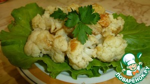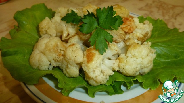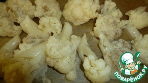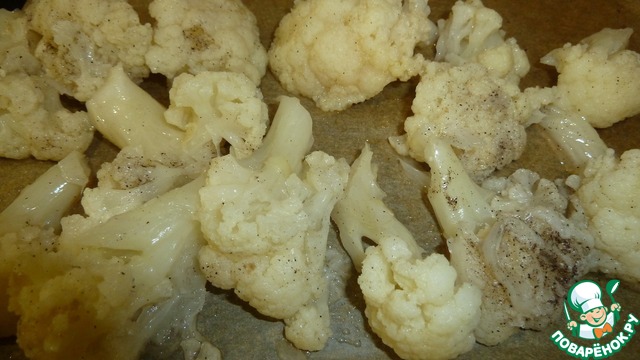Духовку разогреть до 200 градусов. На противень постелить пергаментную бумагу и выложить на неё капусту. Ставим в духовку на 10 мин, потом переворачиваем и запекаем ещё 10 мин.