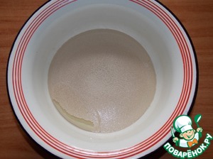 Добавить сахар и дрожжи, перемешать. Накрыть полотенцем и оставить на 10 минут.