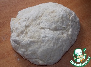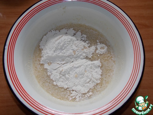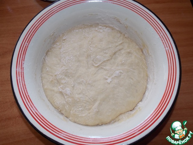 Всыпать постепенно муку и замесить мягкое тесто. Муки может понадобиться немного больше.