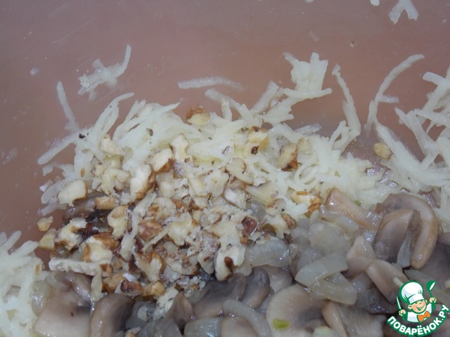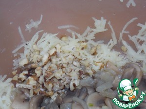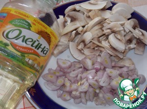 Грибы и лук порезать. Обжарить до готовности на растительном масле ТМ Олейна (10-15 минут).