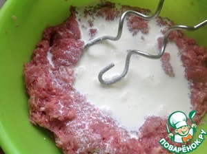 Влить ледяную воду и сливки. Взбивать фарш насадками для теста, минут 15. Убрать фарш в холодильник минимум на час. Можно и на сутки. Сливки берите жирные, не за меняйте на маленький процент или молоко, а то не получится сливочного вкуса.
