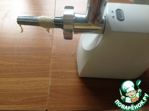 Кишки промыть под проточной водой и натянуть на специальную насадку мясорубки. Набить кишки фаршем, но не очень плотно, чтобы при жарке не лопнула оболочка.