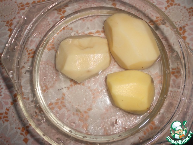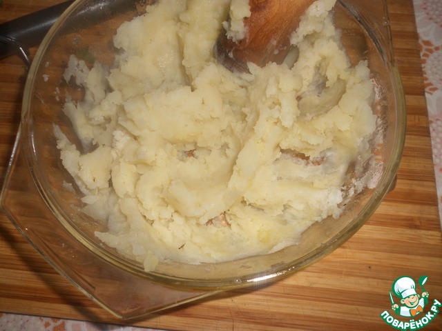 Отварить картофель в подсоленной воде до готовности. Растолочь картофель в пюре.