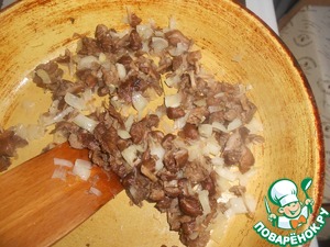 В кастрюлю налить воду. Довести до кипения, положить гречку и варить почти до готовности. Затем добавить обжаренные грибы с луком.