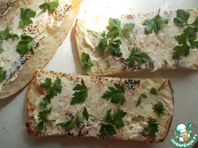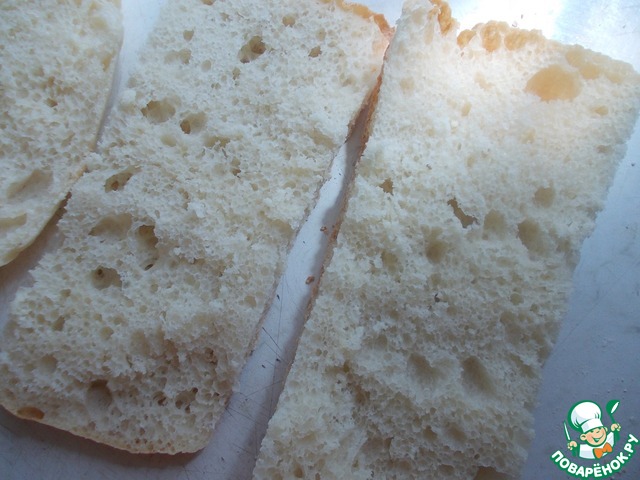Чиабату разрезать на три равные части, затем еще на три, только вдоль.