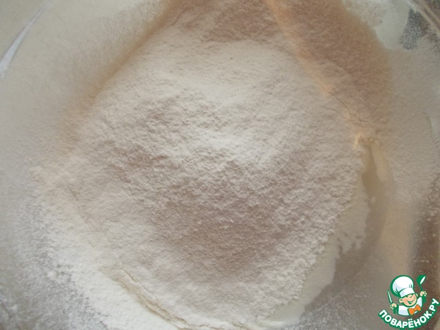 Затем просеим к дрожжевой воде муку и добавим остальную воду (50мл)