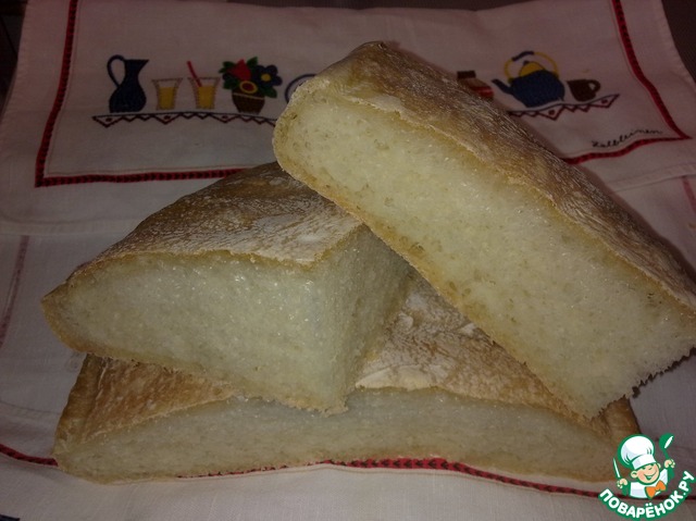 Разогреваем духовку 220С. и отправляем туда чиабатту на 30 минут. Накройте ее полотенцем и пусть отдохнет 10 минуток.