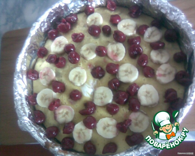 Очень нежный пирожок с вишнeвыми и банановыми нотками.