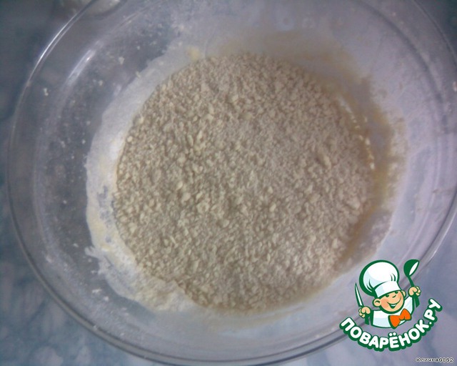 Размягчённый маргарин растереть с мукой и содой (я делала это миксером, вышла меленькая крошка).