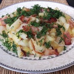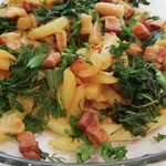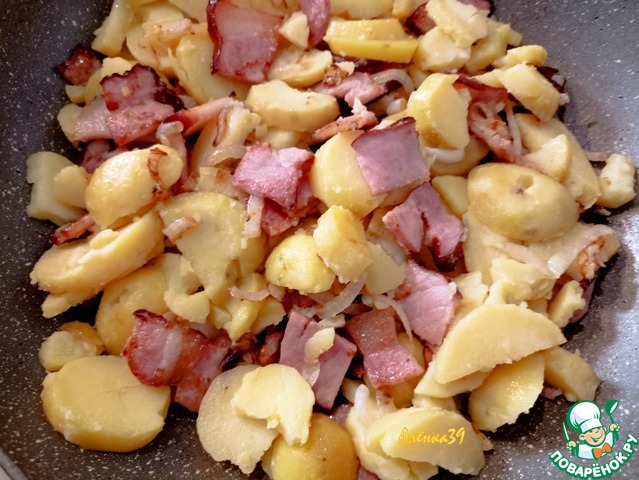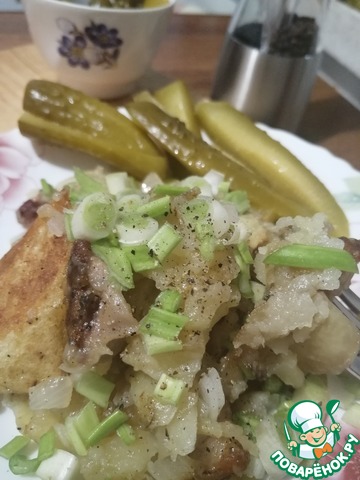 Конечно не просто картошка!!! А жареная на шкварках из солёной грудинки картошечка со слегка обжареным белым лучком!!! Конечно посыпаная зеленью!!! Угощайтесь!!! Да, и что касаемо гостей... они будут в восторге!!! Проверено!!!