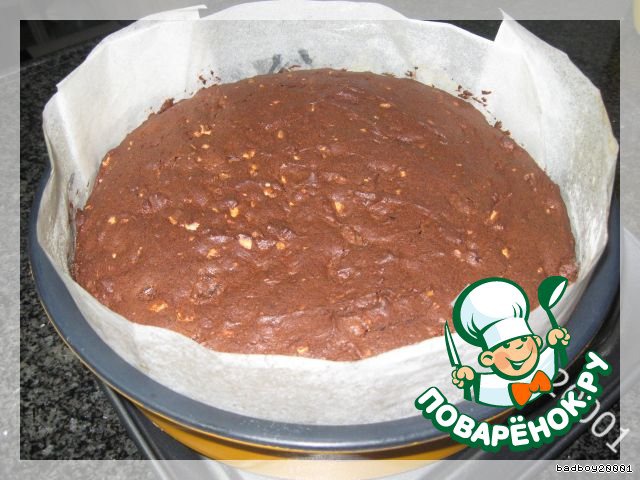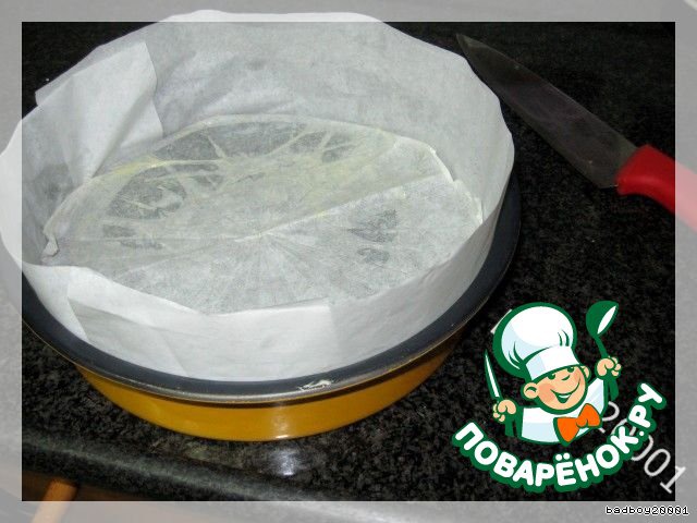 Разогрейте духовку до 160 градусов. Форму для торта смажьте маслом, дно и бока формы застелите пергаментом, и так же смажьте маслом.