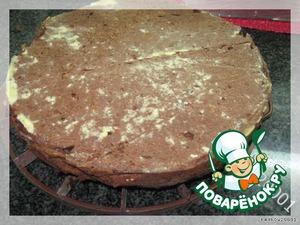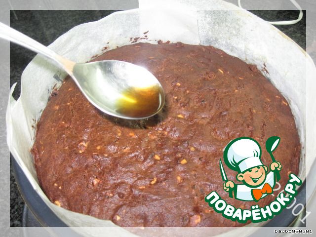 Достаньте корж из духовки и дать немного остыть, не вынимая его из формы. Затем переложите на стол, и сделав деревянной шпажкой глубокие проколы, пропитайте половиной заваренного чая.
