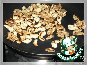 Изюм, и вишню промойте чистой водичкой, орехи поджарьте и измельчите.