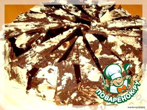 Поместите корж на лист пергамента, или блюдо и оставшимся белым шоколадом обмажьте бока, осторожно вдавливая в торт подготовленные треугольники.