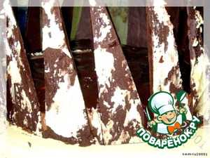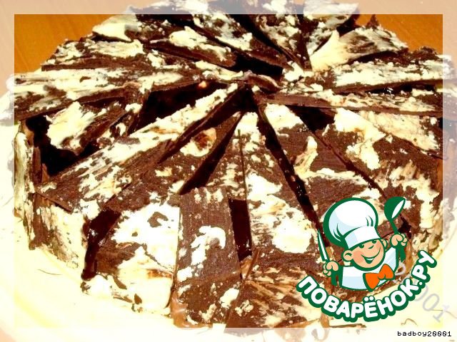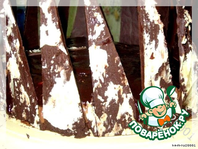 Подбирайте их по высоте так, чтобы они чуть заходили друг на друга, оставшийся шоколад порубить в крошку и присыпать поверхность торта.