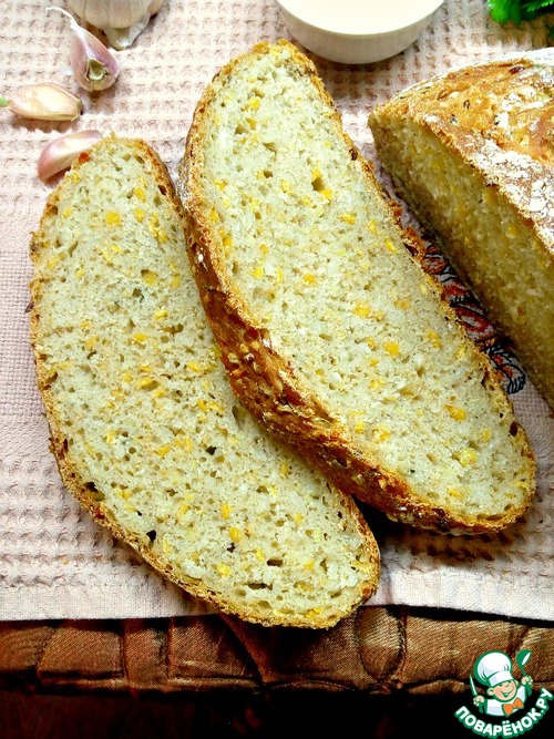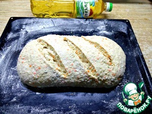 Придать тесту форму батона и уложить на противень припорошенный мукой, или выложить в форму, сделать диагональные надрезы. Выпекать в духовке 45 минут при t 220C. Можно подавать теплым.