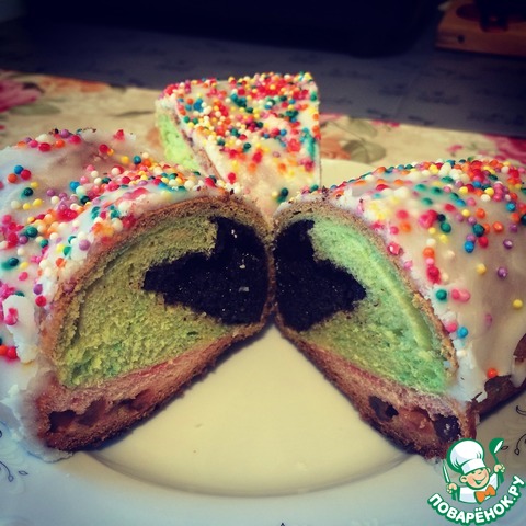 Духовку разогреть до 180*С, отправить в нее венок, снизить температуру до 160*С и выпекать рулет 25-30 минут.