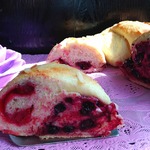 [+4]Из двойной порции получилось четыре венка по 15-17 см в диаметре. Начинка -- красная и черная смородина, малина.