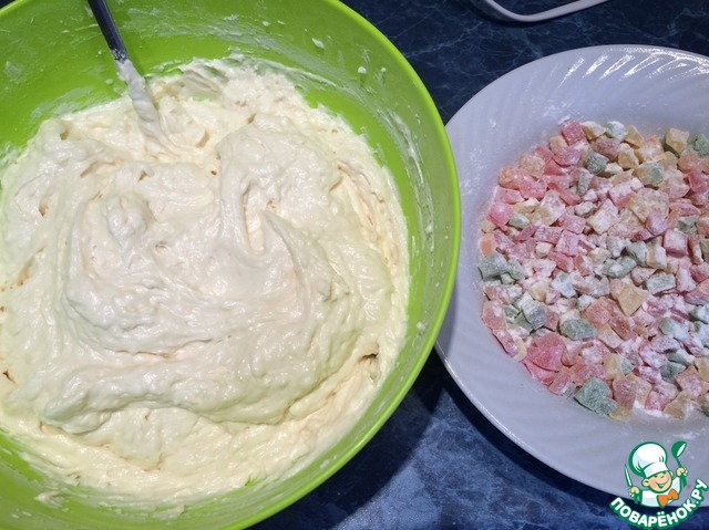 Цукаты- у меня кубики, предварительно я нарезала на более мелкие кусочки