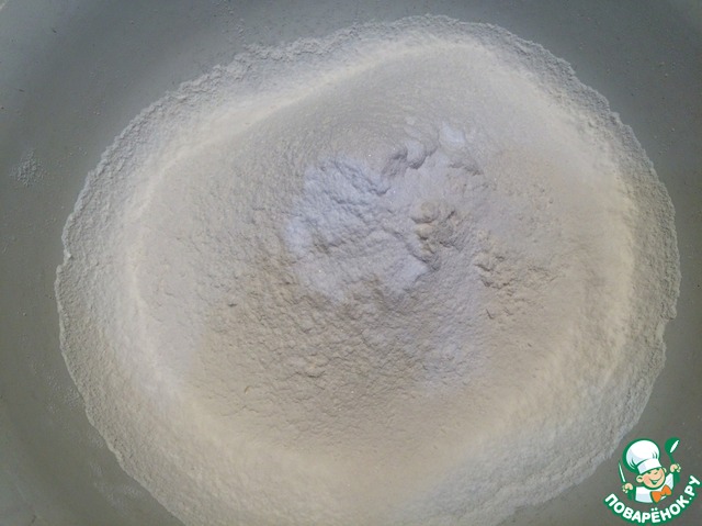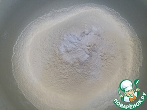 Муку просеять и смешать с разрыхлителем, солью и ванилином.