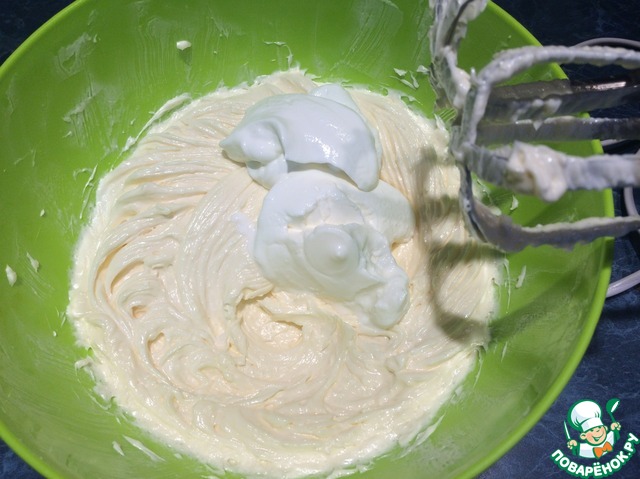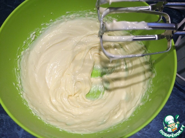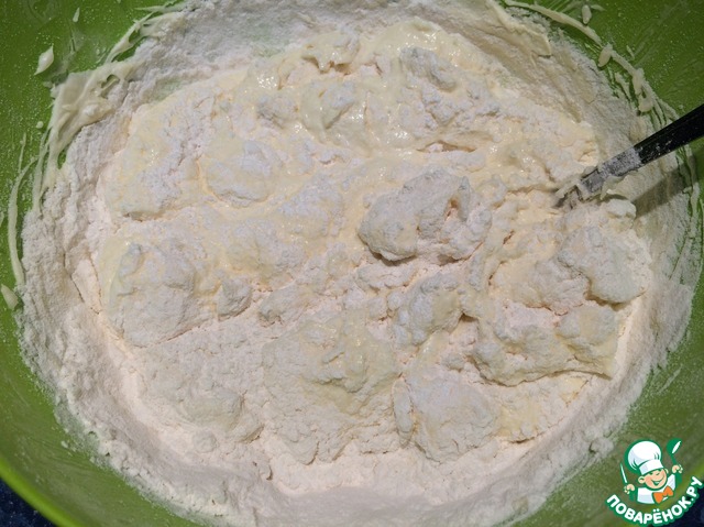 Ввести частями муку, просеивая ее второй раз. Аккуратно ложкой или венчиком перемешать