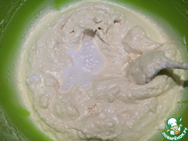 Соду погасить уксусом, добавить в тесто, аккуратно перемешать.