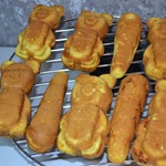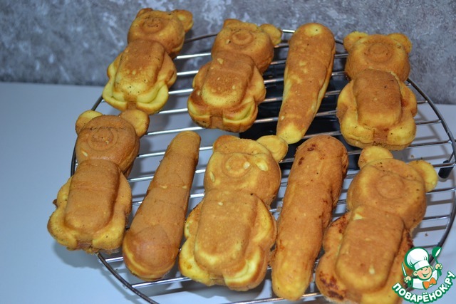 Мишки-Шишки... С ними у меня получилась длинная история, если вкратце, то когда я была еще совсем девчонкой, отец купил эту форму. Мама приготовила один раз, неудачно и забросила ее надолго за ненадобностью. Потом ее отдали, затем она опять вернулась к нам. Смотрела я на нее искоса и прятала подальше - у мамы же не получилось! И вот года два-три назад, когда вдохновилась и приготовление еды стало для меня в удовольствие, я освоила и эту науку))) Теперь пеку легкие, воздушные, невесомые, сладкие Мишки-Шишки. Фото разлома приложу. Если сравнить по вкусу - что-то среднее между бисквитом и кексом. Очень вкусно и нежно! Решила добавить свой рецепт приготовления, может кому и пригодится...
