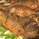 Посыпать нарезанным укропом. Подавать карасей с нарезанным кружочками лимоном и укропом, посыпать лучком. Каждый у себя на тарелке может сбрызнуть рыбку соком лимона. |