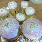 Украшаем наши куличи по своему усмотрению. Я дополнительно использовала вот такие покупные украшения и цветную глазурь.