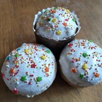 Как видим, применение пергамента для стенок нашей формы придаёт куличикам более ровные бока, но это никак не влияет на вкусовые качества пасхального кулича.