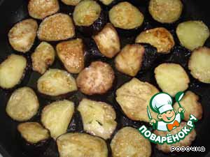 Баклажаны слегка промыть и отжать. Обжарить каждую дольку с двух сторон на растительном масле.