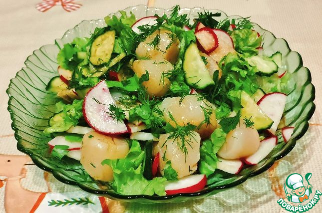Рецепт «Салат свежий с маринованным морским гребешком»: