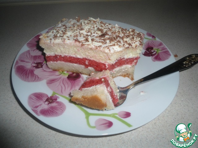 Нежнейший бисквитный торт с клубничной пропиткой и клубничным муссом.