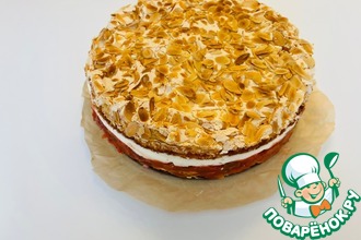Верхний корж пропитываем сиропом, мажем кремом. Бока торта украшаем бисквитной крошкой, а верх шоколадной стружкой. Ставим в холодильник на два часа, для пропитки и застывания.