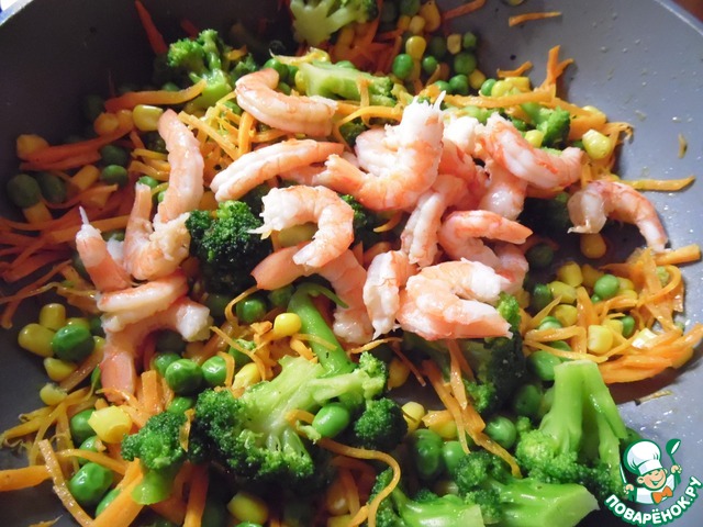 Рецепт «Рис с креветками и овощами»: