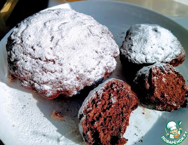 Маффины очень насыщенного вкуса, не требуют дополнительных украшательств, но я посыпала пудрой.
