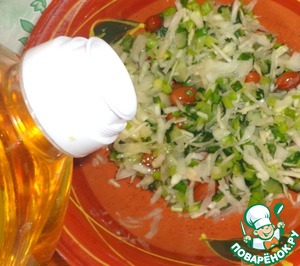 • Заправить салат подсолнечным маслом, посолить и поперчить по вкусу.