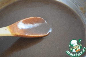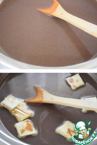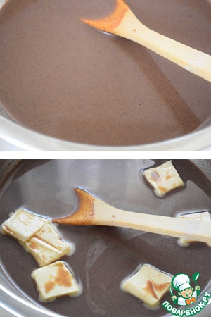 На среднем огне подогреть смесь (как только растворится сахар и кофе, смесь станет однородной), добавить порезанное кусочками масло и довести смесь до интенсивного кипения.