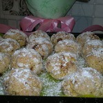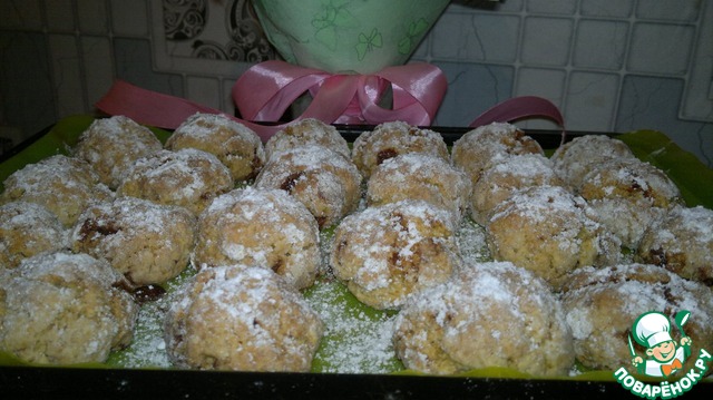 Каждый шарик обвалять в сахарном песке, затем в сахарной пудре. -
