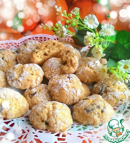 2. Вместо шоколадных капель, которых у меня просто не было, я положила горстку изюма. И он очень освежил печеньки, если буду делать - положу побольше.