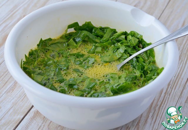 • К яичной смеси добавить молоко, шпинат.