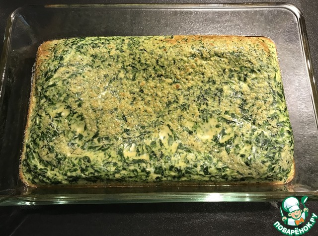 Готовила из свежего шпината, 8 яиц и 240 мл молока. Запекала 30 минут при 180°.