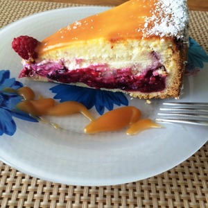 Предлагаю любителям творожной выпечки творожник с прослойкой из ягод и политый соленой карамелью. Очень вкусное сочетание: творог, ягоды, карамель - одно сплошное удовольствие. Можно приготовить и на Пасху.