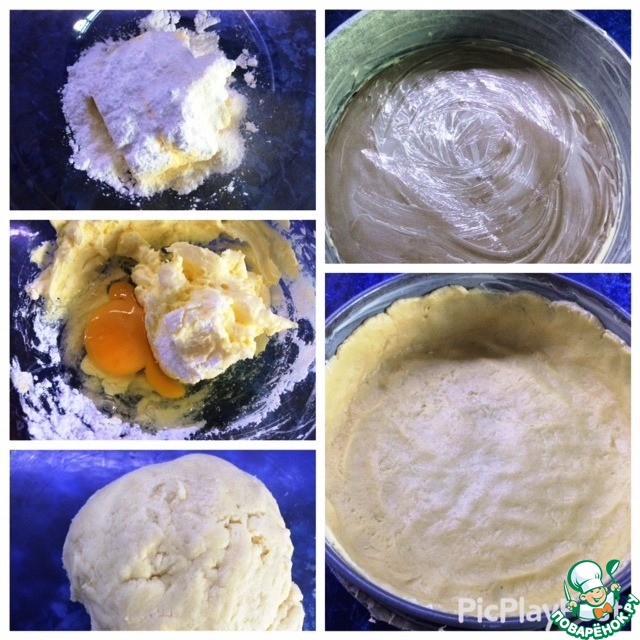 Просеиваем муку, добавляем разрыхлитель, сахарную пудру, щепотку соли, сливочное масло. Перетираем все руками, добавляем яйцо и замешиваем тесто.