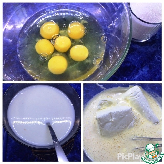 Отправляем творожник в духовку на полтора часа. Следим за своей духовкой, когда надо, верх накрываем фольгой.