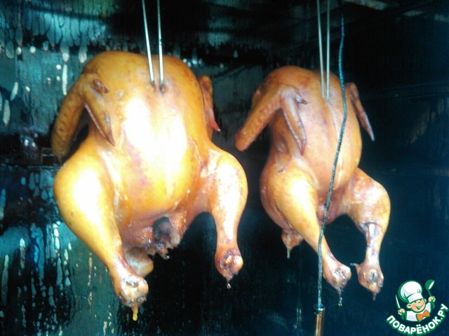 - Курица (Любая часть копченой курицы, только мясо, без кожи) — 300 г