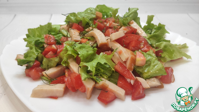 Салатик получается не тяжелый совсем, несмотря на присутствие копченого мяса птицы. Как раз копченый вкус и легкий аромат чеснока придает пикантность нашему блюду.