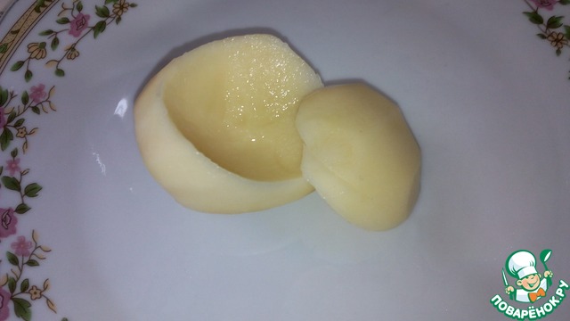Нужно очистить картофель, промыть, и вырезать в картофеле "ямку". Я это делаю чайной ложечкой.