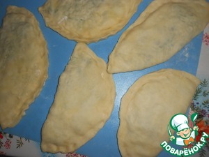 Слепить пирожки. Придавить каждый пирожок ладонью, чтобы они стали плоскими и тонкими.